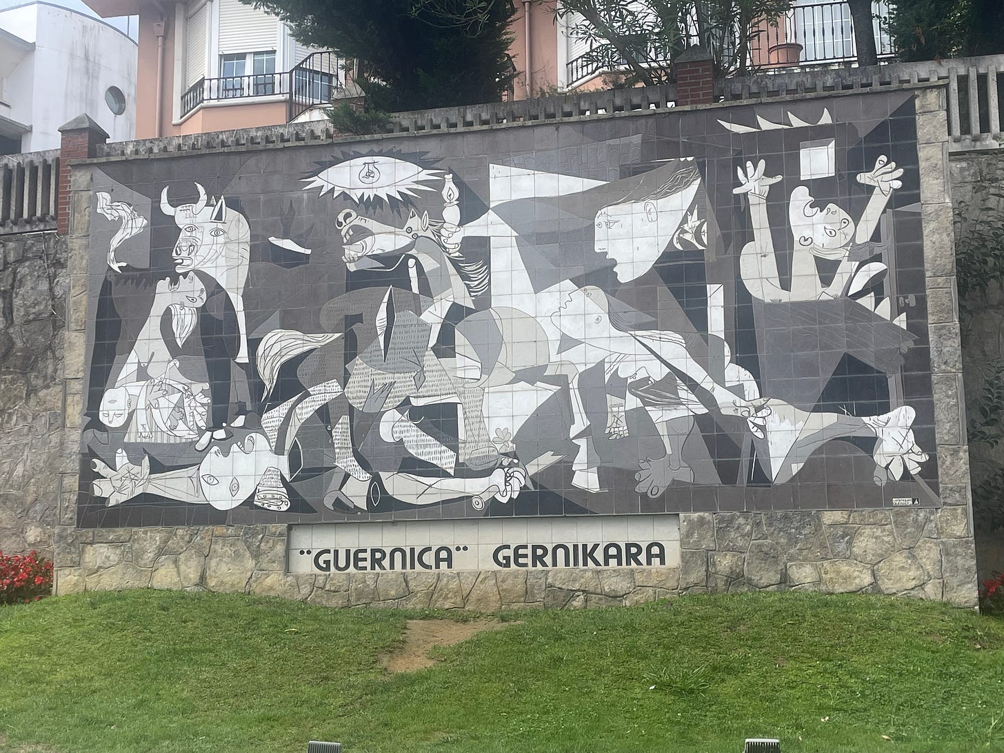 (Picasso’s Guernica, photographed in the town - what happens when civilised, but unthinking, men act)
